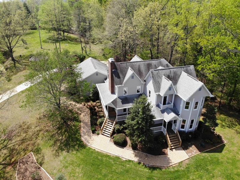 JUST PURCHASED ANOTHER HOME!!! PRICE REDUCTION! 3 BR, 2 1/2 BA home with panoramic views on five acres, of which most are heavily wooded. Features include flagstone patio,w/waterfall; wrap-around porches; screened balcony;screened-in gazebo. Private & NO HOA! Large windows & glass doors frames the mountain views. Open floorplan on the main level for entertaining and the upstairs bedrooms offer quiet respite. One-of-a-kind home located just a short drive to area wineries & historic Dahlonega square.