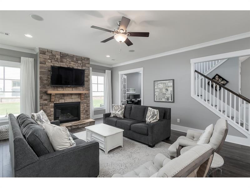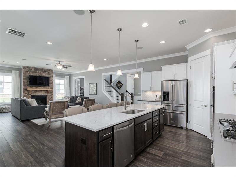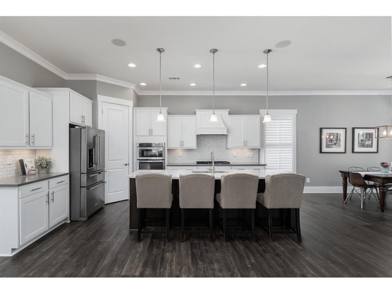 2yrs young, modern farmhouse style home blends sophisticated style w/functional design. Open flr pln w/10' ceil, wide-plank hardwds & high-end finishes. Upgrades galore; quartz ctops, craftsman trim pkg, master bath w/rain showr, chef grade ss appl, only 1 of 3 homes w/3 bathrms up & tons more. Stunning designer kit opens to DR & spacious fireside fam rm creating the perfect living/entertaining space. Exec office. Lofted bonus rm. Mud room w/built in study area. Covered bk patio perfect for watching the game. Walk to Crabapple shops, dining & around corner from Avalon