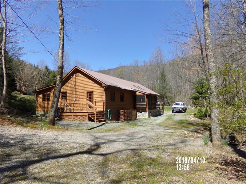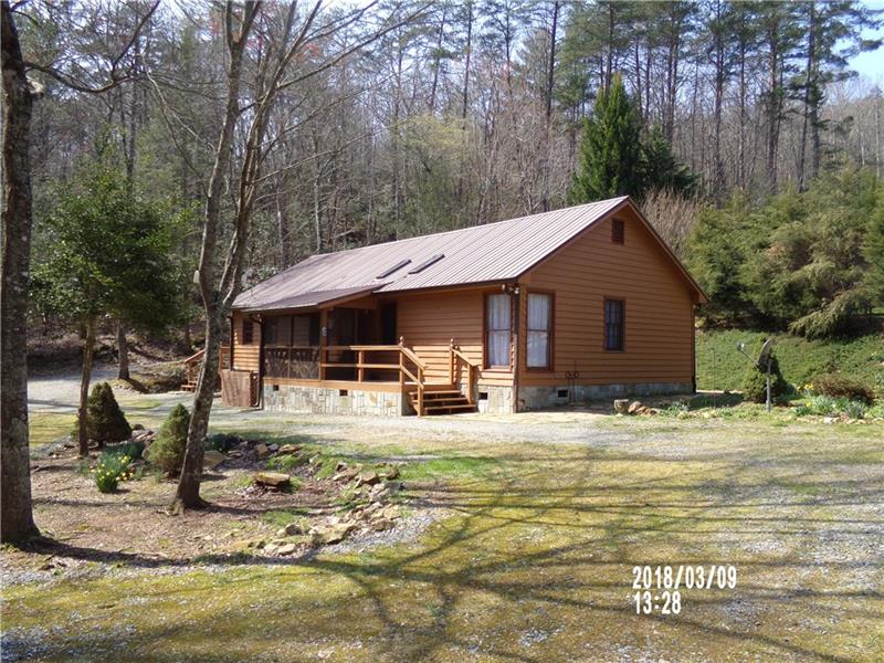 PRICE REDUCED/ACREAGE INCREASED! HIKERS HEAVEN. Owner has cut trails through their property for the Hiking Enthusiast. Recently stained exterior, new stainless kitchen appliances, freshly painted kitchen cabinets. Carpet in bedrooms to be replaced in the near future.3 heat source. Quaint cabin on 3.5 ares. Screened front porch.The easy lay of the land and short walk to the stream give this property a peaceful setting. Secluded and private. Sit on front porch and listen to the stream. 3 bedrooms 2 bath, wood burn heater. Nice country drive to the property.