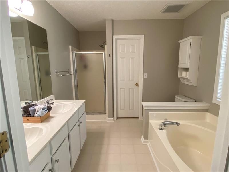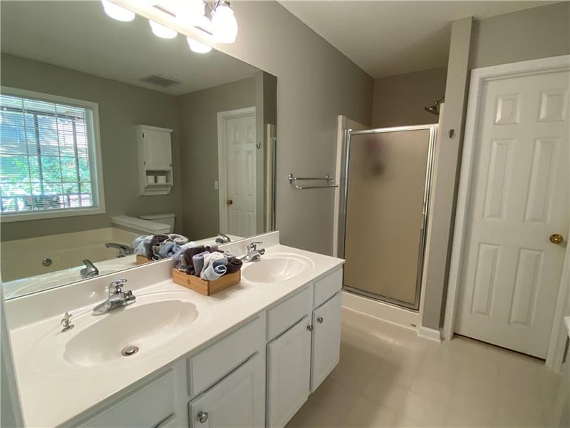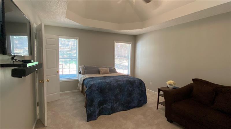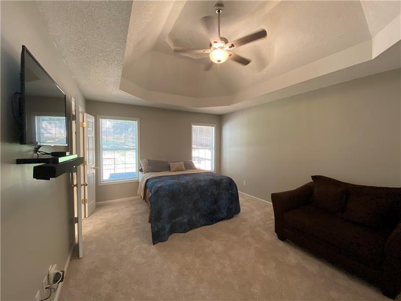 Gorgeous home with new paint, new carpet, new roof, updates and move in ready! All bedrooms are over sized! Trey Ceilings, vaulted ceilings, and all the goodies. Finished lower level with a Bedroom, Theater Room/Living Room with movie screen and projector! Room for kitchenette or other ideas! This lower level can be accessed from the garage for a great inlaw suite. This level has a full bathroom. The yard has very cool brick, fenced yard, screen porch, and a storage building. Towne Lake near the shopping/restaurants. Optional HOA saves you money! This home has professional landscape. The driveway is new!