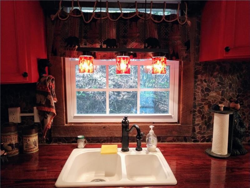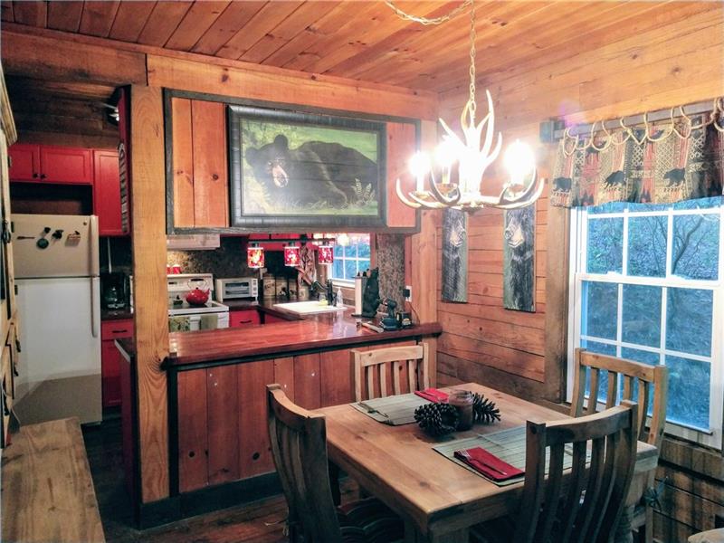 Cozy, comfy true log cabin! 200' frontage sitting right on Talking Rock Creek, you can spit in the water! Private and secluded but convenient to Atlanta, Jasper and Ellijay from Hwy 515. Perfect setting to unwind and de-stress with a glass of wine while listening to the creek and the birds. The cabin is being sold furnished with bears as the decorating theme and each room has been lovingly decorated with items individually chosen to make relaxing your biggest goal of the day.
